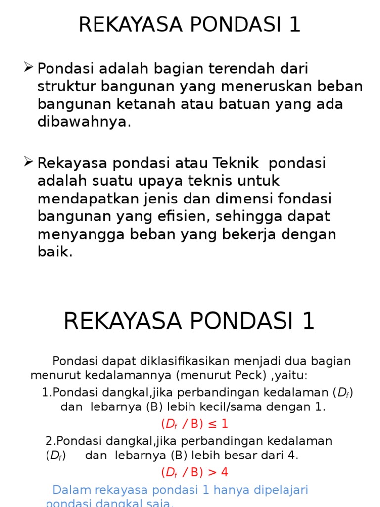 Modul Teknik Pondasi 1 from image.slidesharecdn.com Contoh soal dan pondasi dangkal. Tanah pada kedalaman 1,5 m dari permukaan tanah, jika b = 2,5 m, d. Sebuah pondasi bujur sangkar dengan sisi 5 ft x 5 ft. Dalam tanah yang tidak kohesif padat. D apa yang jawaban pembebanan keamanan kepadatan f o dr relatif tanah pdf free download. Contoh soal dan jawaban akuntansi neraca. Info malang raya facebook hitung daya dukung ultimit angker menggunakan metoda empiris jika lebar b adalah 03 meter 06 meter 09 meter dst dan gambarkan grafiknya antara b dan daya dukung ultimit. 21 1368 kn m2 faktor aman terhadap keruntuhan daya dukung.