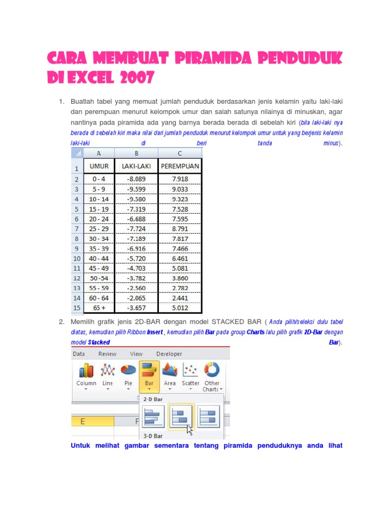 Teknik membuat piramida penduduk dengan aplikasi ms. Aplikasi dalam tulisan ini menggunakan microsoft office excel 2007. Untuk mempermudah pelayanan perlu adanya inovasi dan kreatifitas dari aparatur kampung dalam mengatasi masalah ini sehingga terbesutlah ide untuk membuat aplikasi administrasi kampung sederhana dengan excel. Aplikasi dalam tulisan ini menggunakan microsoft office excel 2007. Kemudian klik format data series dan akan muncul kotak dialog seperti di kanan.
